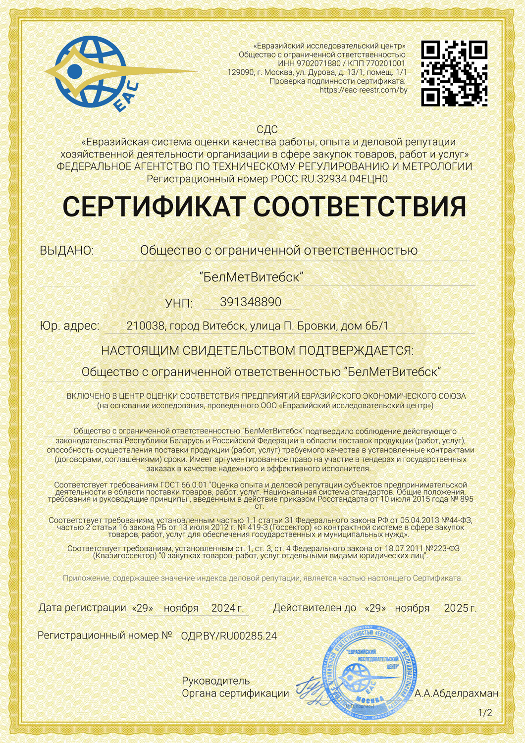 Юридический адрес: г. Витебск, ул. Петруся Бровки, 6Б/1