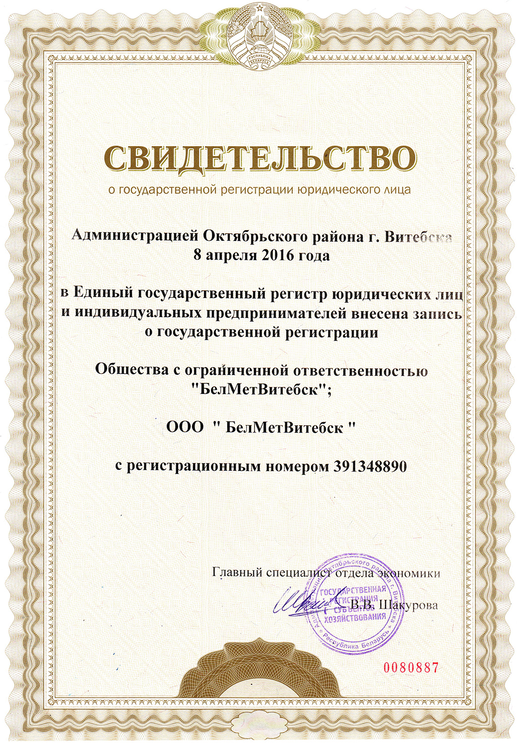 Общество с ограниченной ответственностью «БелМетВитебск»